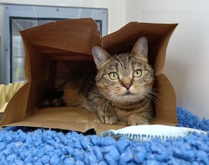 Volunteers at Cats Protection’s National Cat Adoption Centre help care for cats like Khaleesi, who has been at the centre since December 2022.