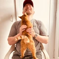 Adopters Colin and Jackie, who had never owned a cat before, decided to meet Garfield after their son visited the branch and told them how special he was.