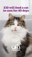 Social story image with '£10 will feed a cat in care for 40 days'